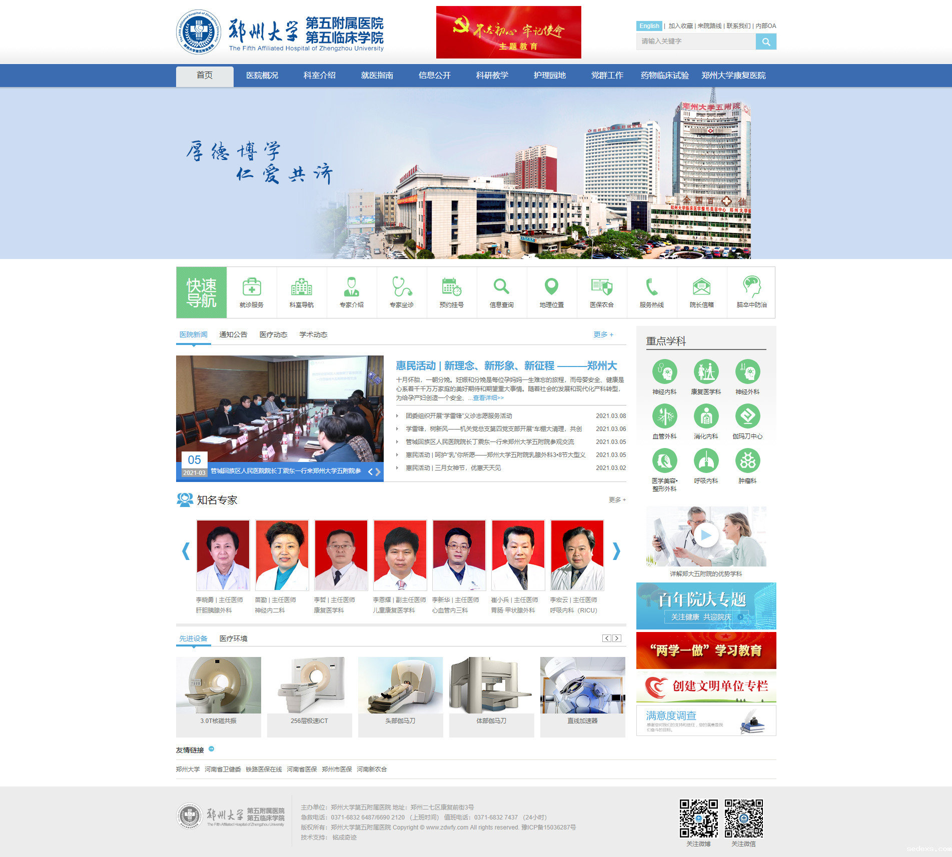 郑州大学第五附属医院是一所历史悠久的省级综合医院,其前身为郑州铁路局中心医院,始建于1915年,2005年9月归属于郑州大学。医院位于郑州市中心,紧邻郑州火车站西广场,交通便利,地理位置优越,占地面积92.17亩,实际开放床位2000张。